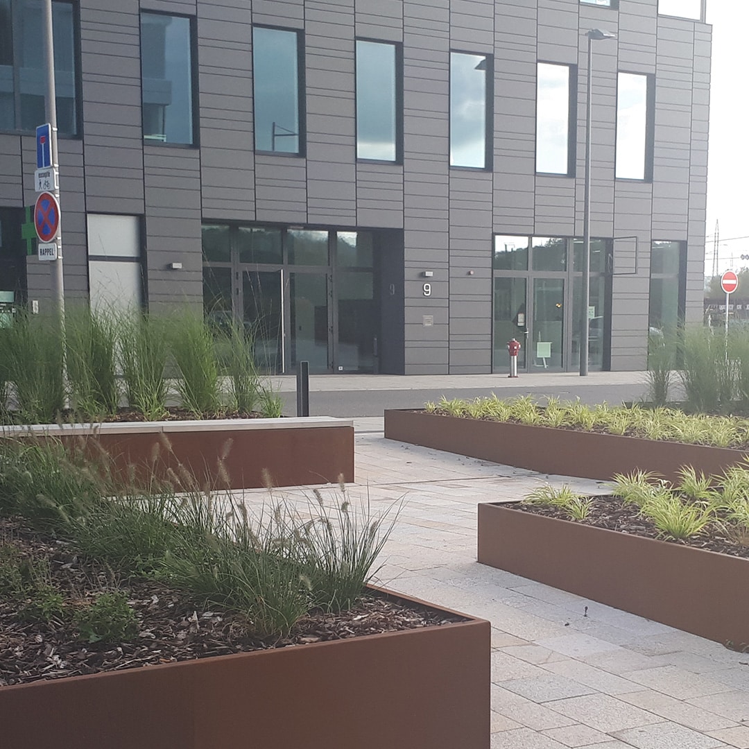 Des bacs en corten pour le parvis