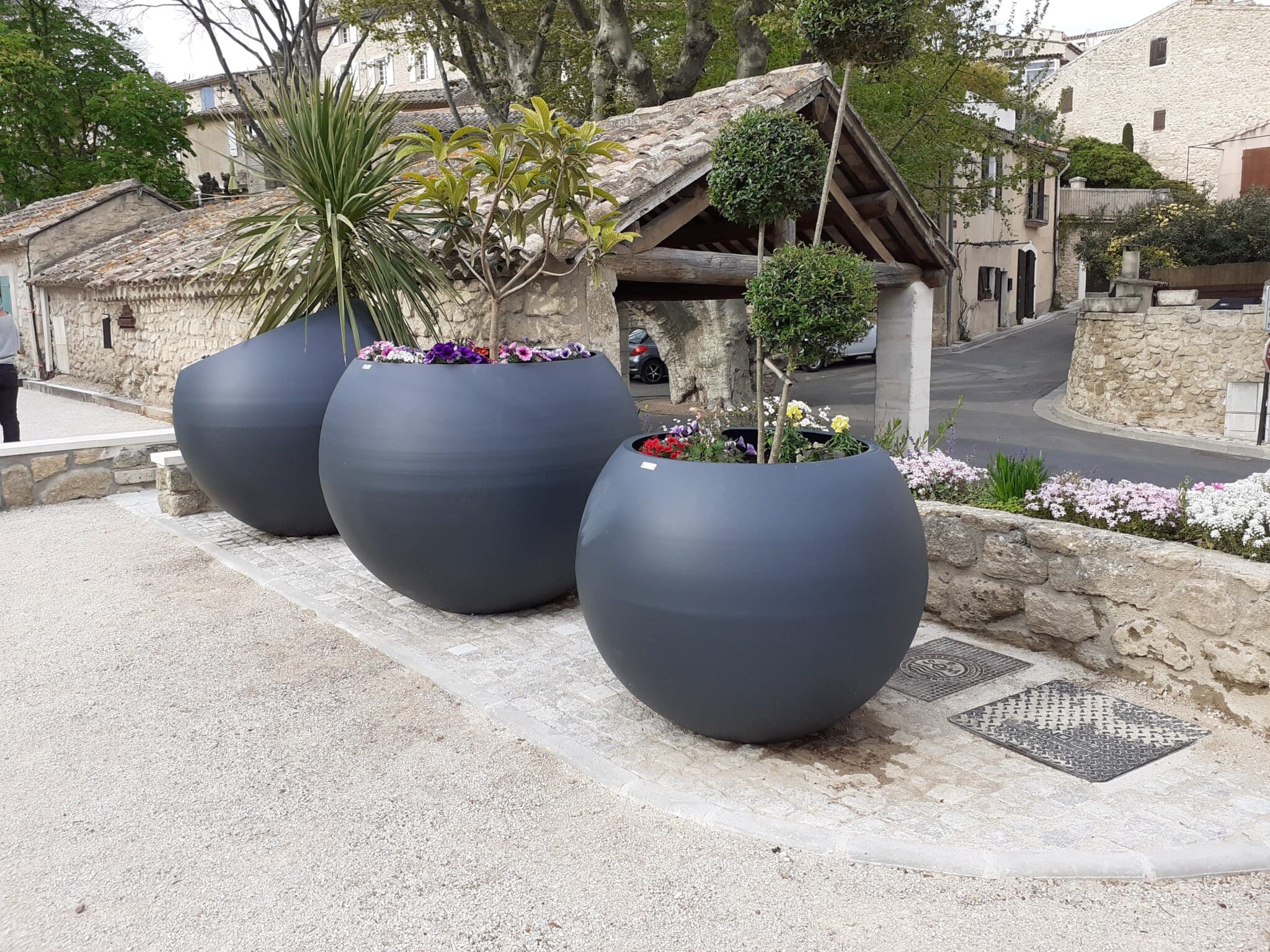 D’abord, le végétal est indispensable pour apporter une ambiance apaisante et conviviale au cœur de l’espace urbain. D’ailleurs, les bacs et pots de la gamme SQUARE, avec leurs designs épurés et leurs multiples tailles, permettent d’intégrer des arbres et des arbustes stratégiquement pour créer des zones d’ombre. Enfin, ces zones, en plus d’améliorer le confort des usagers, augmentent l’attractivité globale de la place.- Bacs sphériques : Ces éléments structurent l’espace tout en offrant une esthétique contemporaine, idéale pour délimiter des zones piétonnes ou border des allées.