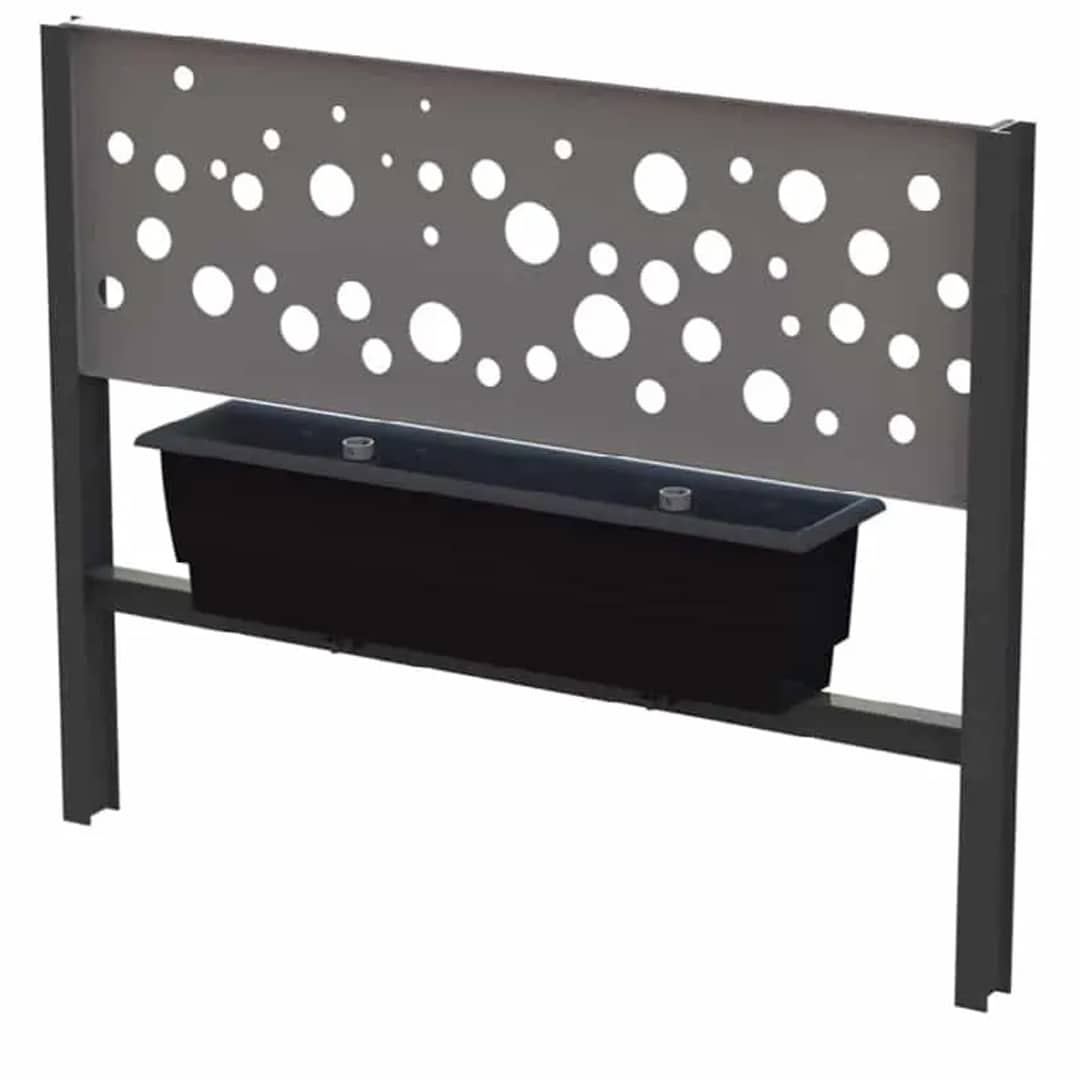 Premièrement, elle offre jusqu’à 0.2 m² de surface végétalisée. Ainsi, la barrière SQUARE permet de créer facilement des micro-implantations florales aux abords ou sur une place.En effet, que vous choisissiez la barrière avec ou sans balconnière, le motif sur la plaque centrale permet d’accompagner la croissance des plantes et notamment des grimpants.