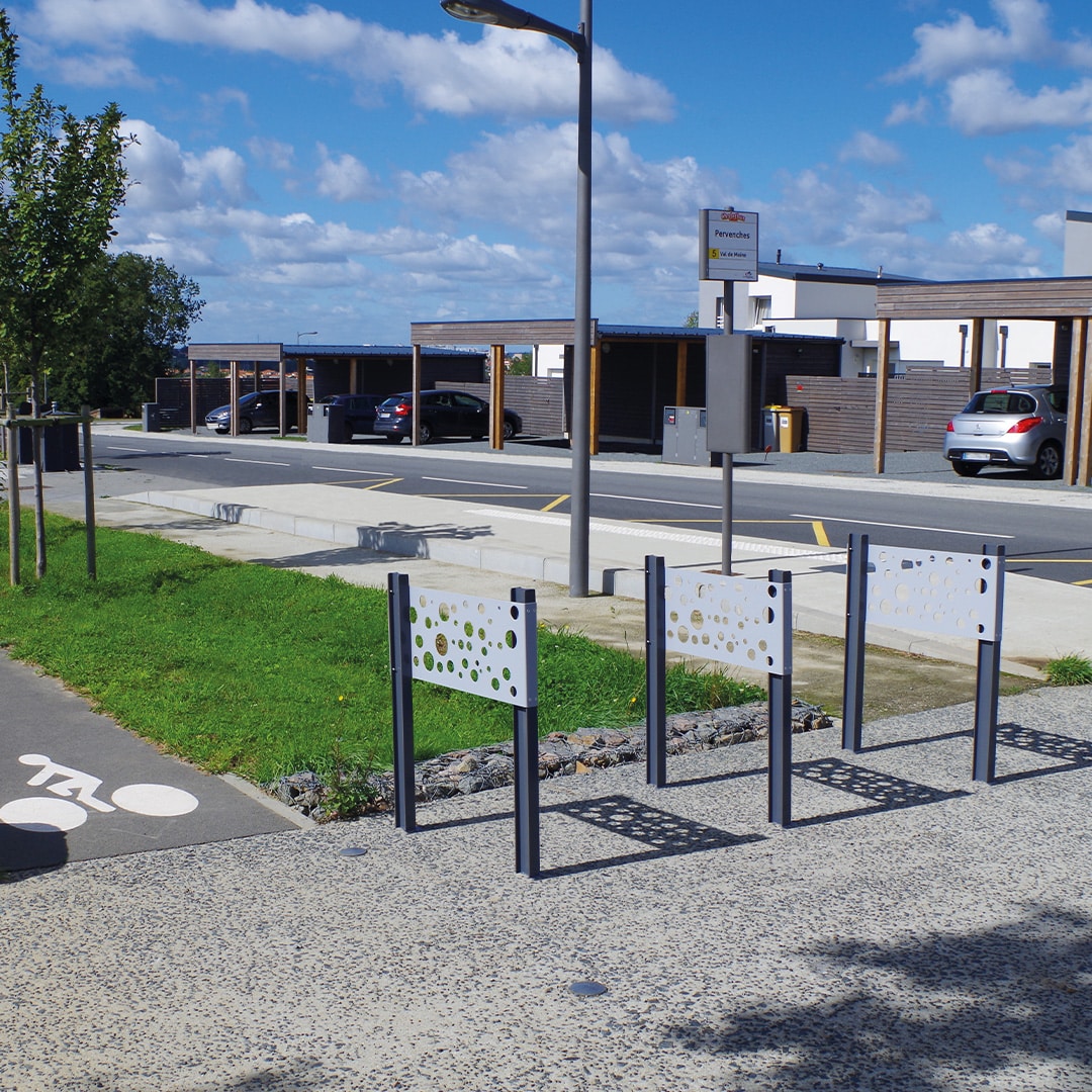D’une part, le support vélo SQUARE est idéal pour créer des parkings à vélo avec originalité aux abords des places. En effet, grâce à son motif de cercles évidés sur la plaque centrale, vous pouvez accrocher votre vélo en toute sécurité. D’autre part, il est disponible avec différentes fixations : à sceller au sol ou sur platine.Ainsi, personnalisez vos supports vélos en choisissant la couleur afin de créer un aménagement esthétique.