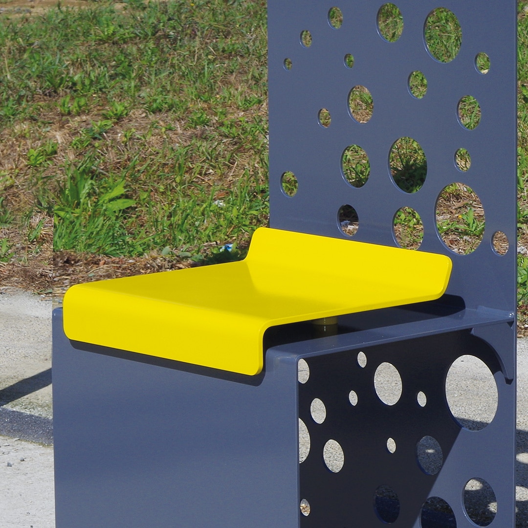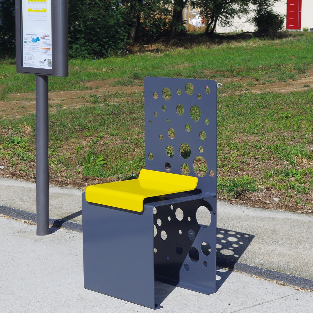 Il faut dire qu’elle est idéale pour compléter un aménagement sur une place. En effet, la chaise SQUARE se distingue par ses formes droites et son motif composé de cercles évidés de différentes tailles. Il faut dire que le motif témoigne d’une précision et d’un savoir faire pour la découpe, le pliage et la soudure.