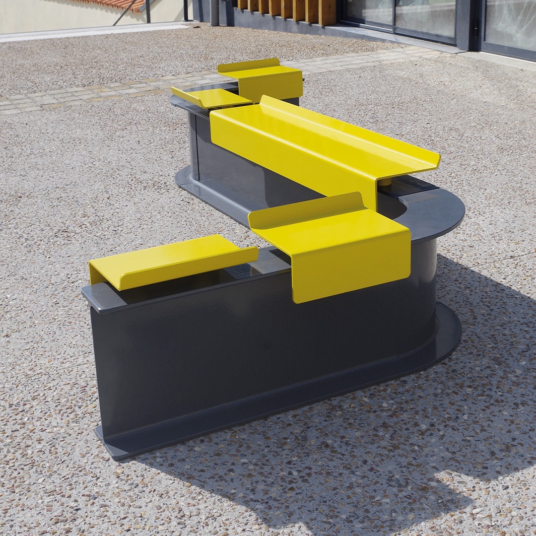 D’abord, les banquettes SQUARE se démarquent par leur originalité. En effet, il s’agit d’assises fixées sur une structure IPE 80 mm en zig zag. Enfin, cette solution offre une modularité sans pareil et apporte originalité et modernité au cœur d’un aménagement de place.